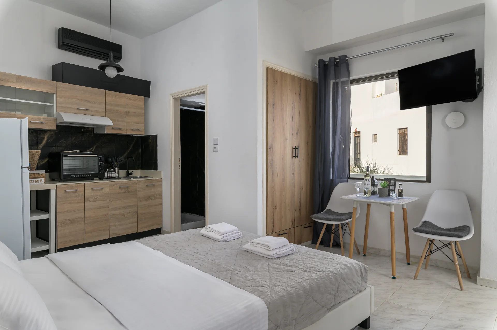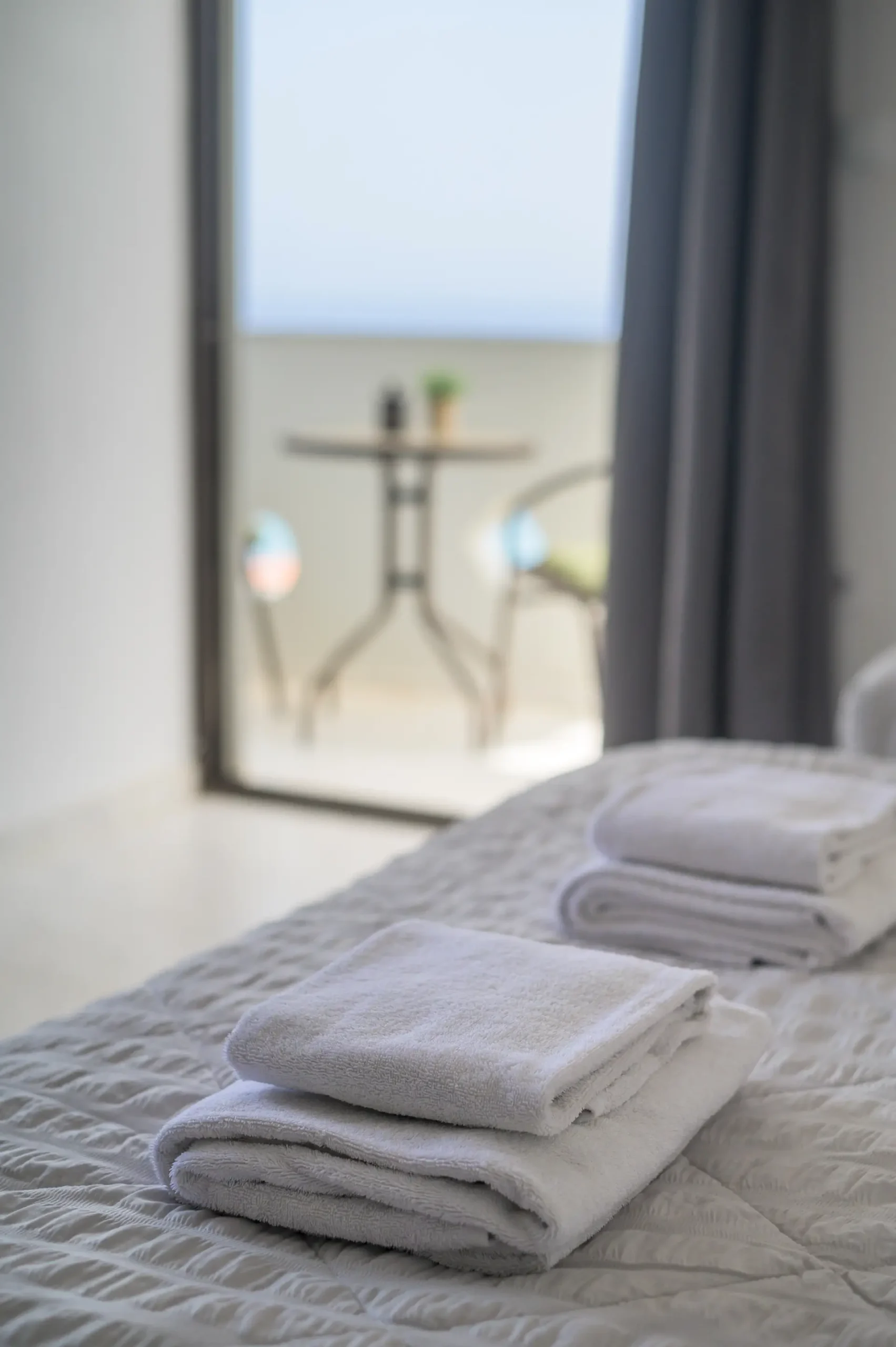 Στο Harmony και το Mirtos4Seasons, τα δωμάτιά μας είναι σχεδιασμένα με γνώμονα την άνεση, το στυλ και την απλότητα — είτε είστε ζευγάρι, παρέα φίλων ή οικογένεια. Επιλέξτε ανάμεσα σε άνετα δίκλινα δωμάτια, ευρύχωρα τρίκλινα ή ένα τετράκλινο δωμάτιο μεγάλου μεγέθους, όλα προσεκτικά διακοσμημένα και εξοπλισμένα με σύγχρονες ανέσεις. Αρκετά από τα δωμάτιά μας προσφέρουν εκπληκτική θέα στη θάλασσα, δημιουργώντας το ιδανικό περιβάλλον για μια χαλαρωτική και αξέχαστη διαμονή.